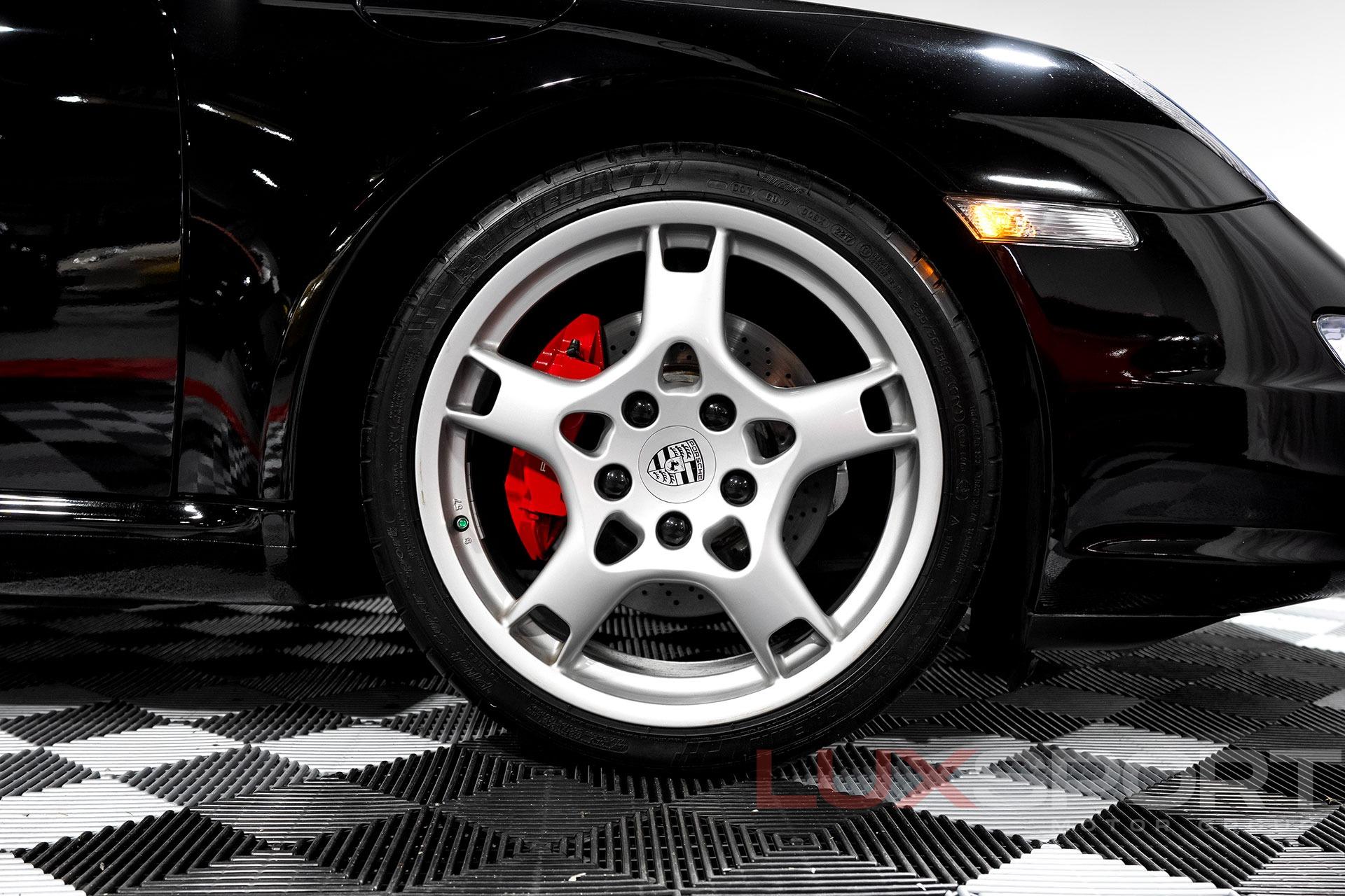 LuxSport Motor Group, LLC presents for sale this 2005 Porsche 911 Carrera S. Finished in Black with Black standard leather, it is equipped with a 6 speed manual transmission and has just 28,085 miles. We have the original service records back to 2015 when it showed 15,000 miles and it was beautifully maintained. All original paint and panels and never damaged. Only one modification: the exhaust by B&B Performance Exhaust and it sounds amazing! The sale is accompanied by 2 master keys, the owner's books and a clean Carfax History Report. Partial paint protection film applied to the fenders, hood, front bumper and the back of the outside mirrors.