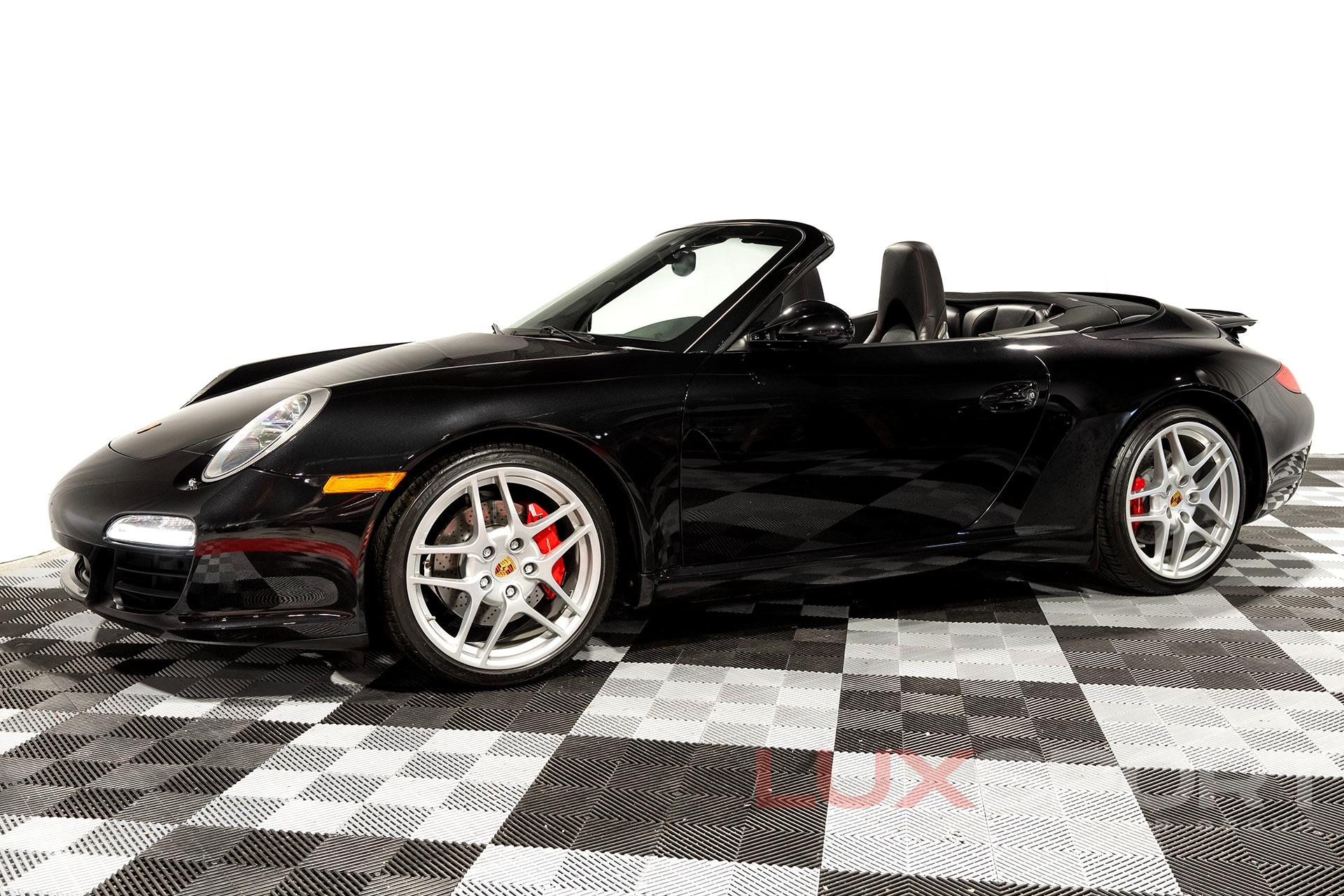 LuxSport Motor Group, LLC is proud to offer this 2009 Porsche 911 Carrera S Cabriolet. Finished in Basalt Black Metallic with Black standard leather and cabriolet roof in Black, this 997.2 has covered 48,780 miles from new between two owners. It is equipped with a 6 speed manual transmission and is in excellent condition throughout. The first owner had service performed at the same shop in OH for the first 7 years and up to 44,847 miles. The second owner used it minimally over the next 9 years and traded it at 48,777. We acquired the car from the dealer after a pre-sale inspection which included an oil and filter change. The sale is accompanied by a clean Carfax History report, owner's books and two master keys. 997.2 manual transmission models are increasingly difficult to find and this is a fantastic opportunity to own a great example of one.